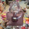 Stunning burgundy 3-piece handbag set featuring a spacious tote with luxurious fluffy fur handles and gold chain accents, matching zip pouch, and mini card wallet — bold, trendy and perfect for fashion-forward women.