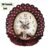 Add a touch of royalty and elegance to your living space with this stunning Victoria SM Peacock Quartz Wall Clock. This extraordinary timepiece is far more than just a clock — it is a work of art. The magnificent peacock-inspired frame is crafted in rich deep red with intricate hand-carved feather detailing spreading majestically around the oval clock face. Dozens of sparkling silver crystal/rhinestone embellishments are embedded throughout the feathers, catching light beautifully and creating a dazzling effect. At the base of the clock, two graceful peacock figures face each other in an elegant pose, each adorned with crystal accents on their crowns. The vintage-style oval clock face features a delicate floral bouquet print in soft cream tones, classic black Arabic numerals, and a red second hand for a timeless antique aesthetic. Powered by precise quartz movement, this clock combines stunning visual appeal with reliable timekeeping. Perfect as a centerpiece for living rooms, bedrooms, or as a luxurious gift.